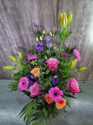 Een speels en liefdevol bloemstuk dat de vrolijke herinneringen levend houdt.